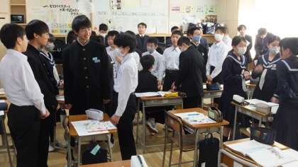 本時の授業では、「靴」という文章を読み、家族について考えました。生徒は真剣に考え、積極的に仲間と話し合いました。