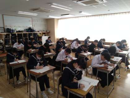 生徒は、テキスト学習が始まってから約2か月のこれまでのがんばりを発揮しようと、テストに臨んでいます。