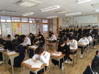 今週の初めから行っているテキストテストも本日が最終日です。今日は、国語と英語のテキストテストを1時間の中で取り組みます。