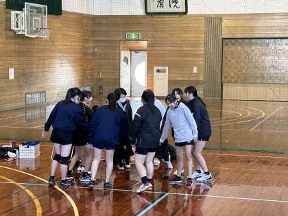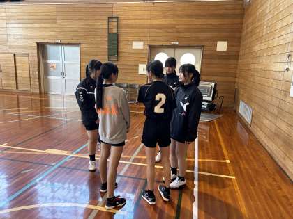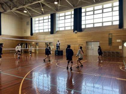 本日、バレーボール部は藤ノ木中学校との合同チームで、練習試合を行っています。声を掛け合って、元気に活動しています。
