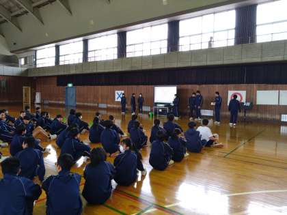 本日の5,6時間目の時間に2年生は学年レクリエーションを行いました。当日までに学年プログラム委員のみんなが朝や放課後の時間を使い、学年みんなが楽しめるようにと○×クイズとビーチバレーボールを企画してくれました。