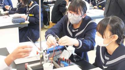 2月13日(火)2年 授業風景 公開日 2024/02/13 更新日 2024/02/13 2年生 2−1理科の様子です。 「異なる種類の電熱線に電流を流したときの水の温度変化を記録し、電熱線で発生する熱の量が何によって決まるかを調べよう」 みんなで手順を確認しながら、実験を進めています。
