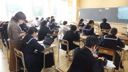 2月19日(月)1年 授業風景 公開日 2024/02/19 更新日 2024/02/19 1年生 1−2国語の様子です。 「少年の日の思い出」の読解です。 少年が盗みを犯す場面の心情について、読み取ったことをChromebookで入力していきます。