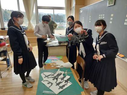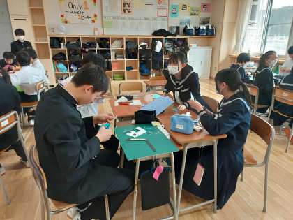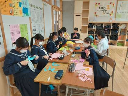 一年生全員で、一階廊下の飾り付けを担当します。今日から飾りに使うパーツを切り始めました。お世話になった先輩方を思いながら、感謝の心を込めて作成します。