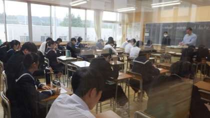 3月5日(火)3年 授業風景 公開日 2024/03/05 更新日 2024/03/05 3年生 3−2英語の様子です。 リスニング練習をしています。 県立高校一般入試は目前、集中して取り組んでいます。