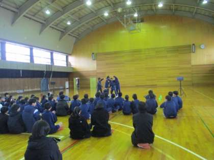 3月6日(水)3年 ダンス発表会 公開日 2024/03/06 更新日 2024/03/06 3年生 本日4時間目、3年生は今まで体育の時間に練習してきたダンスの発表会を行いました。 各グループが、自分たちで創意工夫をこらし、振り付けを考え、素敵なダンスをつくり上げました。踊っている生徒も、見ているみんなも笑顔になれる、楽しい時間になりました。
