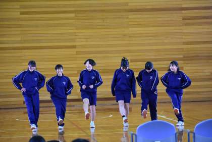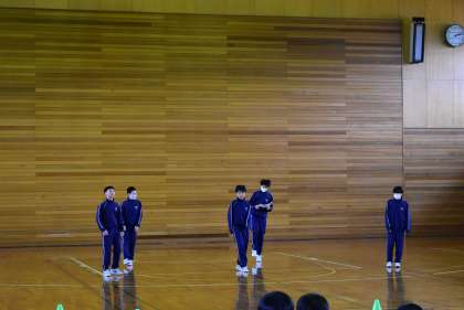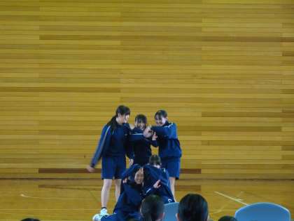 3月19日(火)1年「ダンス発表会」その2 公開日 2024/03/19 更新日 2024/03/19 1年生 ダンス発表会での各グループのダンスの写真です。 上:2組 決めた配置でボックスステップをしています。 中:2組 最後の決めポーズをしているところです。 下:1組 息を合わせてステップを踏んでいます。