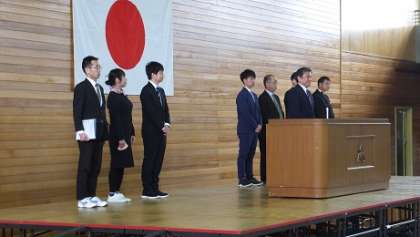 式辞では、「対話と認め合い」を大切に、「本気で取り組む」「当たり前のことが当たり前にできる」人になってほしい、と話がありました。