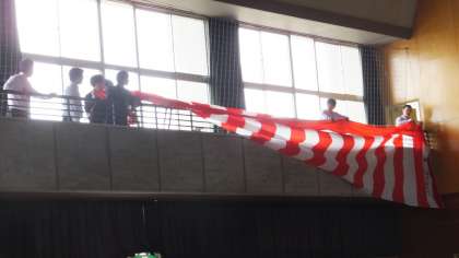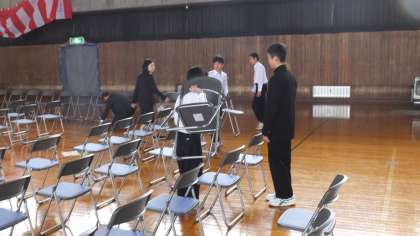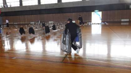 会場準備の生徒も、てきぱきと自分の役割を果たしています。力持ちもいます!