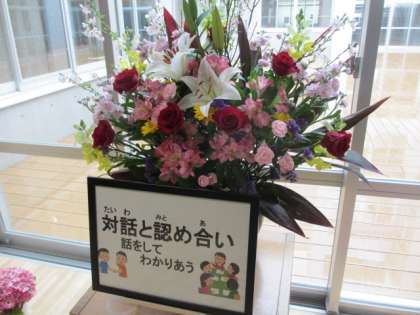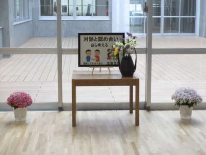 そのときに大切なことが「対話と認め合い」。自分の思っていることをしっかりと相手に伝える。逆に、相手のことも正しく誤解なく理解すること。生徒一人一人が思いやりをもって、心の通った対話を重ね、素敵な大人へと成長できるようにと、玄関に飾ってあります。