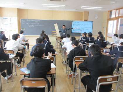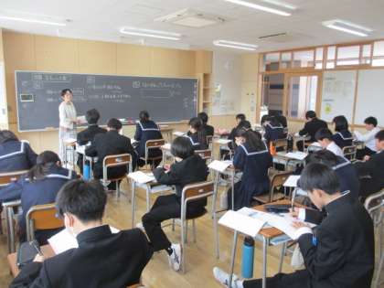1組は数学。正負の数の学習です。「−」を使っての表現を考えています。