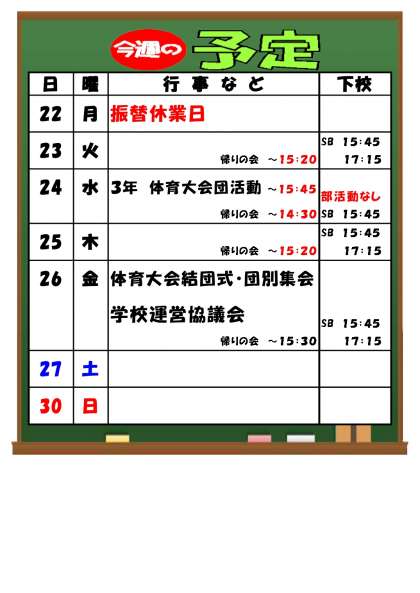 水曜日から、3年生の体育大会団活動が始まります。まずは週に1、2回程度、放課後1時間の活動です。
