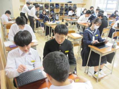 5月1日(水)教育相談中の自習 公開日 2024/05/01 更新日 2024/05/01 3年生 学年集会の後、時間が少しあったので、自習をしながら一人一人の教育相談を行いました。 待っている間、クロムブックを使ってドリル学習をしたり、教育版桃鉄で日本各地を学習したりして時間を有効に使っていました。