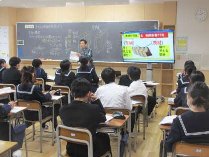 5月1日(水)1年 授業風景 公開日 2024/05/01 更新日 2024/05/01 1年生 本日5限目の授業風景です。 1組は国語。記述問題の解答をみんなで共有しています。 2組は技術。木材の特徴を確認しています。
