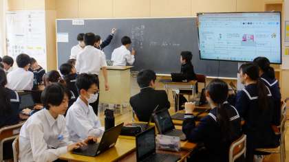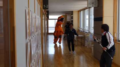 5月10日(金)大山ダイナソー祭りについて考えよう 公開日 2024/05/10 更新日 2024/05/10 その他 実行委員会の方のお話を伺った後、各学級で祭りを盛り上げるためのアイディア出しを行いました。生徒は大変真剣に、柔軟な発想でアイディアを出してくれました。 すると、自分の話題で盛り上がっていることを聞きつけたのか、なんと校内にティラノサウルスが出現!当日のティラノサウルスレースさながらに校内を駆け抜けていきます。生徒は大喜びでした。
