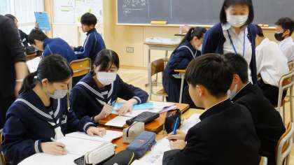 5月13日(月)2年 授業風景 公開日 2024/05/13 更新日 2024/05/13 2年生 2−2英語の様子です。 「各段落でどんなことを伝えたいのか捉えよう」 グループで力を合わせて内容を読み進めます。