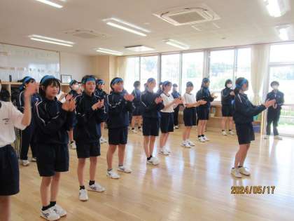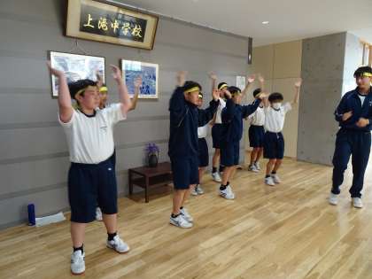 ダンスを伝授する3年生、覚えようと練習する下級生、どちらも一生懸命です。