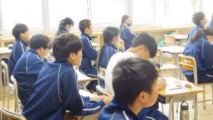5月20日(月)3年 授業風景 公開日 2024/05/20 更新日 2024/05/20 3年生 3−1国語の様子です。 論語の有名な一節を書き下し文に直す活動です。 真剣にポイントを聞きながら、直していきます。