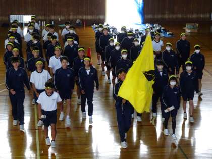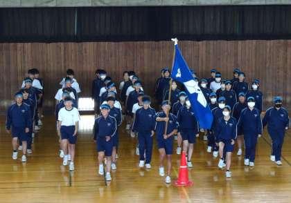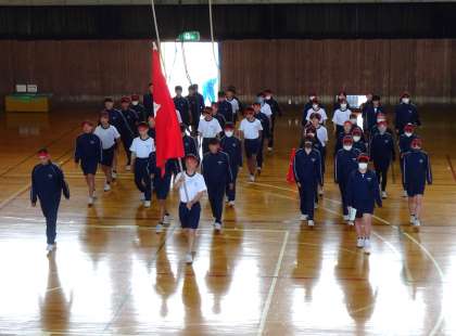 5月20日(月)体育大会 全体練習 公開日 2024/05/20 更新日 2024/05/20 学校生活 5時間目は、社会体育館で開会式の動きの練習を行いました。 写真は、開会式前の各団の入場練習の様子です。入場の行進も各団息が合ってきました。