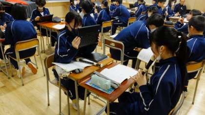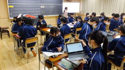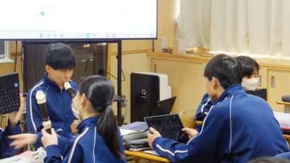 5月21日(火)3年 授業風景 公開日 2024/05/21 更新日 2024/05/21 3年生 3−1音楽の様子です。 「『花の町』 高い音をきれいに出す秘訣は?」 Chromebookで撮影してもらい、自分の演奏を確認しているようです。