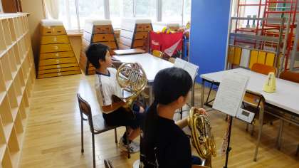 コンクールやイベントでの演奏に向けて、パート練習に取り組んでいます。