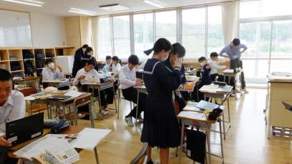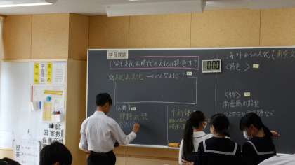 6月3日(月)2年 授業風景 公開日 2024/06/03 更新日 2024/06/03 2年生 2−1社会の様子です。 「安土桃山時代の文化の特色は?」 自分で考えたり、友達と相談したりしながら、答えをまとめていきます。