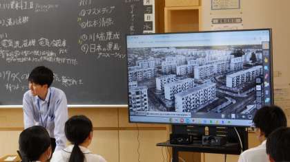 3−1社会の様子です。 戦後の復興の様子について、当時の映像や資料を見ながら学習しています。