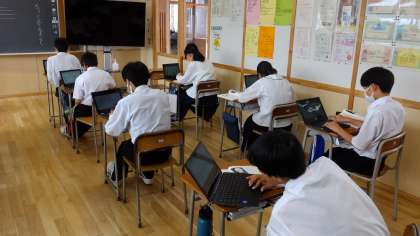 6月7日(金)1年 授業風景 公開日 2024/06/07 更新日 2024/06/07 1年生 1−1国語の様子です。 「ちょっと立ち止まって」 筆者が3つの絵を挙げて何を伝えようとしているか、読み取っています。 段落のまとまりなどを考えながら、ジャムボードにまとめています。