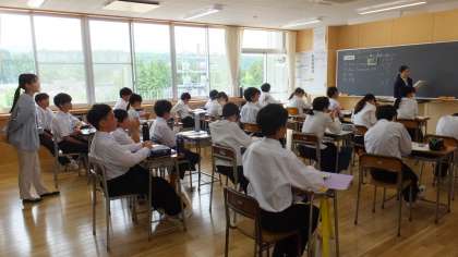 6月10日(月)1年 授業風景 公開日 2024/06/10 更新日 2024/06/10 1年生 1−1英語の様子です。 「したいことや夢を英語で伝えよう!」 教科書の本文を、全員で元気に読んでいます。