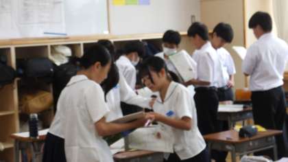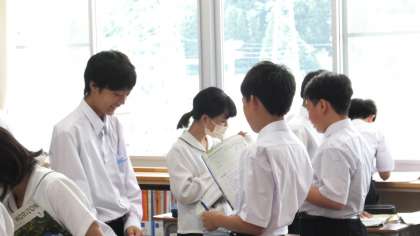 6月17日(月)1年 授業風景 公開日 2024/06/17 更新日 2024/06/17 1年生 1−1英語の様子です。 「数を英語で尋ねたり、答えたりしよう」 学習したフレーズを使って、ペアで質問し合っています。