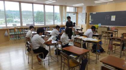 2年生も教え合いをする部屋、一人で学習する部屋に分かれ、精力的に取り組んでいます。