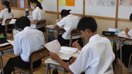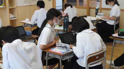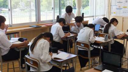 6月19日(水)1年 授業風景 公開日 2024/06/19 更新日 2024/06/19 1年生 1−1国語の様子です。 文法の学習をしています。周りと教え合いながら、文を文節や単語に区切る問題に取り組んでいます。