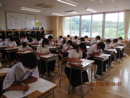 6月24日(月)1年 期末考査 公開日 2024/06/24 更新日 2024/06/24 1年生 今日から期末考査が始まりました。 初めての定期考査に、緊張した面持ちです。 学習の成果を出し切ろうと、集中して答案に向かいます。