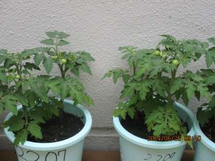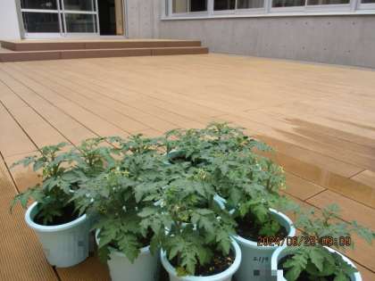 2年生が家庭科で栽培しているミニトマトが、実を付け始めました。