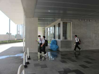 熱中症対策として、玄関のミストシャワーの使用開始です。