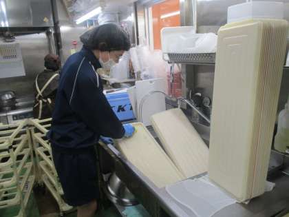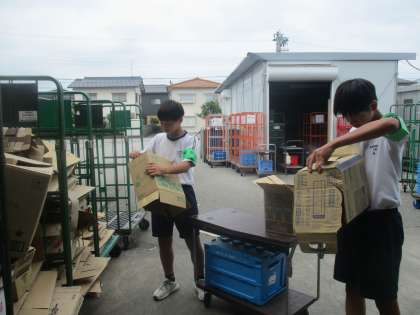 7月2日(火)2年 社会に学ぶ「14歳の挑戦」 大阪屋ショップ立山店 公開日 2024/07/02 更新日 2024/07/02 2年生 揚げ物をのせる台車の大きなトレイをしっかりキレイに洗浄したり、品出し作業では商品を陳列して段ボールを片付けるなど、自分たちの仕事をテキパキとこなしていました。(保護者ボランティアの方が作成)