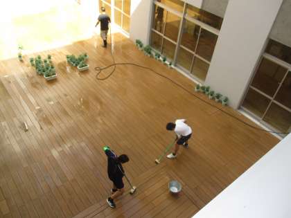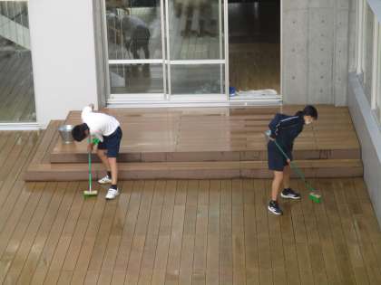 7月3日(水)2年 社会に学ぶ「14歳の挑戦」 上滝中 公開日 2024/07/03 更新日 2024/07/03 2年生 今日も1つの事業所が休業のため2名が学校で職場体験をしています。中庭のこけをはがす作業です。何気なく見ていましたが3日に1回は清掃されているそうです。思った以上に力がいる大変な作業でした。いつも学校のために大変な作業を繰り返している用務員さんに感謝です。