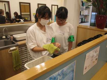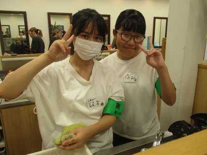 7月3日(水)2年 社会に学ぶ「14歳の挑戦」サニー美容室 公開日 2024/07/03 更新日 2024/07/03 2年生 今日が初日です。店内にはお客様がたくさんおられ、大変忙しそうでした。お店の方は、「なかなかゆっくり指導できない中、頑張っていますよ!」と言って下さいました。2人とも、明るい笑顔が素敵でした。(保護者ボランティアの方が作成)