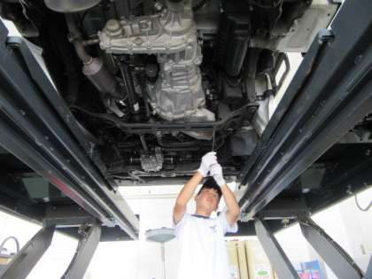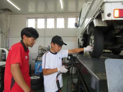 7月3日(水)2年 社会に学ぶ「14歳の挑戦」 グリーンポート大山 公開日 2024/07/03 更新日 2024/07/03 2年生 オイル交換の説明を受け、実際に軽トラックの車体下からオイルを抜き、交換を行いました。その後、タイヤの空気圧の確認は、説明を受けながら経験させてもらいました。真剣に説明を聞いて、積極的に取り組んでいました。(保護者ボランティアの方が作成)