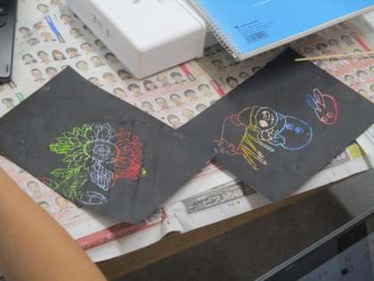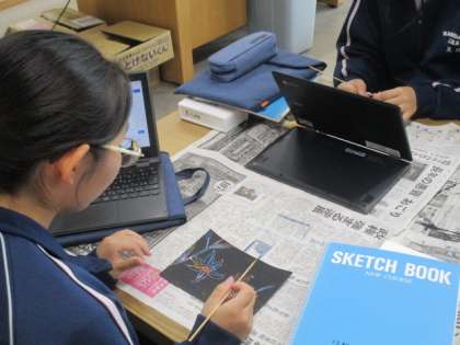 7月5日(金)1年 授業風景 公開日 2024/07/05 更新日 2024/07/05 1年生 今日は猛暑日になりそうですが、本校は特別教室も含め、全教室冷暖房完備です。 1−1美術では、快適な環境で作業に集中しています。 自作したスクラッチシートを削り、花や動物などを描いているようです。 今日は体育の授業はありませんが、部活動の時間帯も暑いことが予想されます。顧問の監督下で、適宜休憩を取りながら活動する予定です。