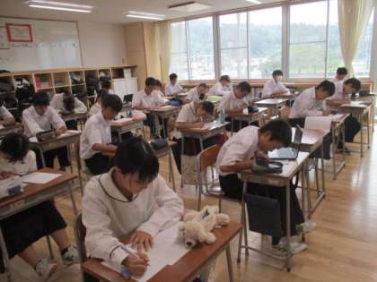7月10日(水)2年 社会に学ぶ「14歳の挑戦」お礼状清書 公開日 2024/07/10 更新日 2024/07/10 2年生 先日下書きした事業所の方へのお礼状を、清書します。 心を込めて、慎重に書いています。