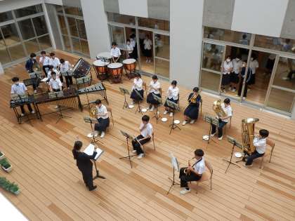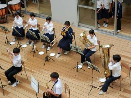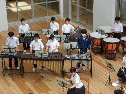7月12日(金)吹奏楽部 壮行演奏 公開日 2024/07/12 更新日 2024/07/12 部活動 吹奏楽部は、14日(日)に新川文化ホールで行われる県吹奏楽コンクールに出場します。本番2日前の今日、放課後に創作テラスで壮行演奏を行いました。たくさんの生徒が駆けつけ、自由曲「喜歌劇『メリー・ウィドウ』セレクション」を聴き、激励しました。 当日は練習の成果を発揮してくれることを祈っています!