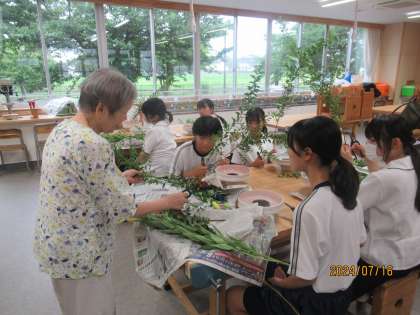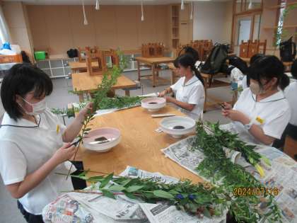 7月16日(火)部活動 華道教室 公開日 2024/07/17 更新日 2024/07/17 部活動 今年度、初めての活動を行いました。講師の先生からは、はさみの使い方や花が美しく見えるような生け方を教わりました。