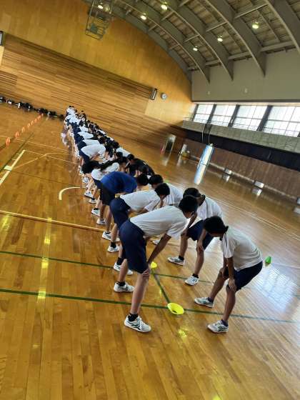 保護者懇談会の期間、顧問による部活動指導が難しいため、担任外の教員が運動部生徒を集めて合同トレーニングを行います。