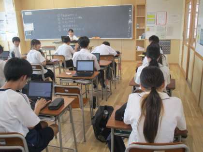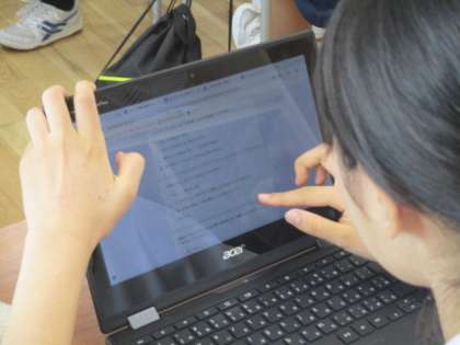 リーダーアンケートや学校評価アンケートなど、Chromebookで様々なアンケート調査に回答しています。