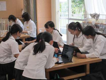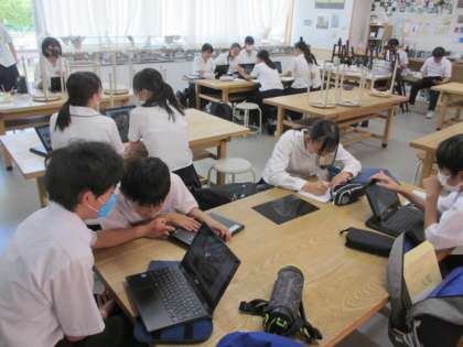 涼しい美術室で、楽しく制作等に取り組んでいます。