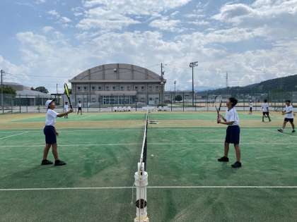 男子バスケットボール部とソフトテニス部の活動の様子です。 今日は湿度が高い中、頑張って活動していました。