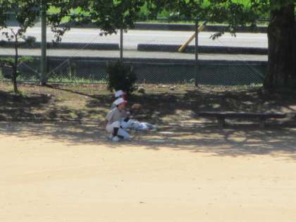 野球部はピロティでシャトル打ちをしたり、木陰でピッチング練習をしたりして、明日の練習試合に備えました。