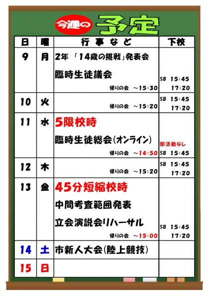 12/18( 木 ) ★保護者懇談会にお越しになる際に