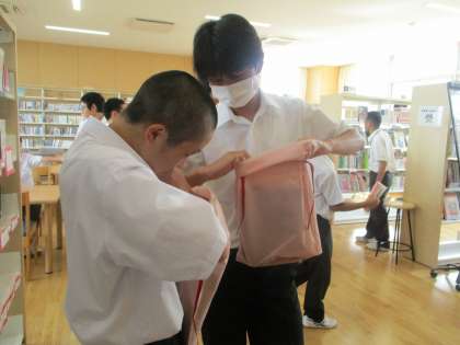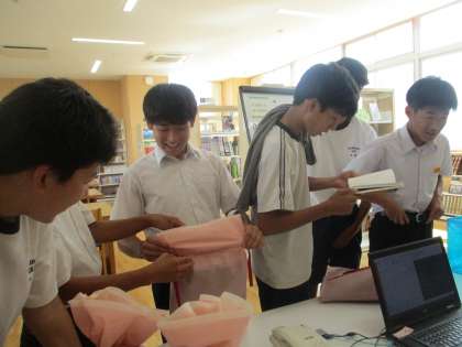 9月12日(木)図書委員会「本ガチャ」 公開日 2024/09/12 更新日 2024/09/12 生徒会活動 図書委員が企画している「本ガチャ」が今週から始まりました。様々なジャンルの本が袋の中に用意してあり、その中から選んだ1冊を借ります。どきどきしながら袋の中身を見ています。図書室は大盛況です!